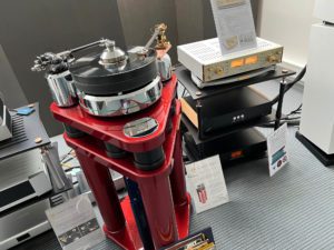 A blast from the past, British turntable maker Lumley returned with the fully revised €35,000 Stratosphere Mk III turntable, with custom arm and vdH cartridge, as well as a pair of active Lyravox loudspeakers. It was a delight to see this model both brought up to date with improved bearing and isolation, and a delight to see it still being made by John Jefferies, after short 20 year hiatus. While the big-ticket item in the room was the outstanding HSE Audio Master Phono Preamp 7 (which at €77,000 was almost as much as the rest of the system combined), the sound was perfectly poised and very well balanced.