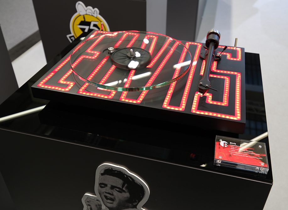 Pro-Ject had one of the largest stands at the show, with a slew of new products, including electronics. The thing that everyone noticed was the new portable music system, built into a flight case and demonstrated by the cabin crew in a mock-up set of aircraft seats. But what caught my eye was the limited edition, LED lit Elvis turntable in its Artists range, complete with 10m thick glass platter, 9″ arm and pre-fitted Sumiko Rainier moving magnet cartridge. Price is still to be confirmed. The company also launched a 75th anniversary Snoopy limited edition turntable and two new Automat automatic turntables.