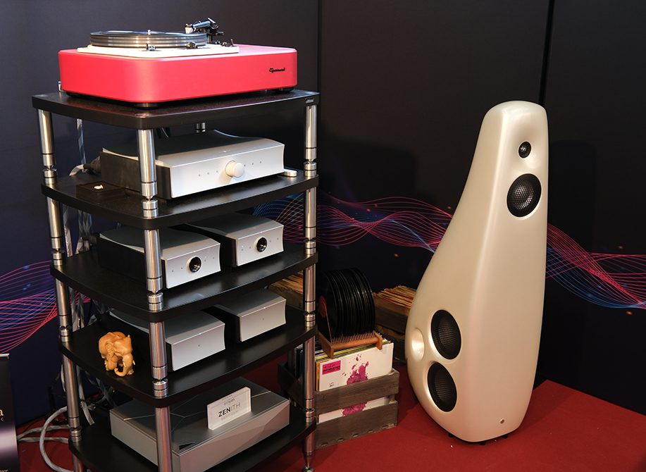 Döhmann Audio’s Helix One turntable is one of the most highly respected designs in modern high-end vinyl replay. And designer Mark Döhmann is equally liked and respected among his analogue peers, which is why the new GRAVITON Ti tonearm from Wilson Benesch was launched on the Helix One platform. Derived from the arm fitted to the mighty GMT One System turntable, the £30,000 GRAVITON Ti is the result of state-of-the-art materials and manufacturing science. It features the innovative STAGE One over-arm shielded output system. This is the first time the technology in Wilson Benesch’s arm has been used outside of the GMT ‘ecosystem’. It sounded great in a room that also featured Alieno amplifiers and Cessaro loudspeakers.