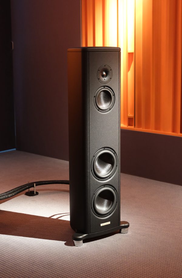 Part of a rolling series of demonstrations in the Audio Reference room, Perlisten showed its new $30,000 S7t Black Edition floorstander with two D8 subwoofers (powered by Perlisten’s 3kW amps, all for $20,000). This was played through dCS, Trinnov, and D’Agostino’s new integrated amp. Even though I was standing way off-axis in a packed (open) demonstration, it was something special, with outstanding dispersion. This sort of accuracy, resolution, bass depth and dynamic range is hard to find at anything close to this price!