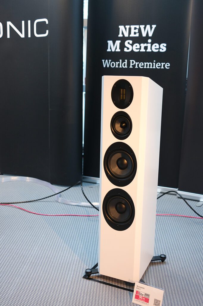 Shown for the first time to the general public, Scansonic HD‘s new M-Series draws upon the same gene pool as Dantax stablemate Raidho Acoustics, but with the accent on excellent value for money. A range of M15.2 stand-mount, the smaller M20.2 floorstander, and the range-topping M30.2 (pictured here, €3,500 per pair) all feature a ribbon tweeter, with sandwich membrane drivers and rear-mounted passive radiators. Costing less than a single diamond-coated driver from Raidho, the two brands nevertheless share a common sonic signature in broad terms, and this elegant and affordable loudspeaker was one of the stars of the show.