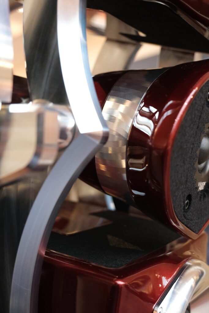But what’s the point? Our hearing system is highly temporally sensitive. We can detect time-domain errors of just a few microseconds, and this is one of the key components of hearing that doesn’t degrade with age. Most fixed-baffle loudspeakers can achieve in-room time-domain coherence of about 100µS, but our hearing can resolve coherence errors at around 10µS. The Autobiography improves on the WAMM’s 2µS. When everything arrives at the listener’s ears at the same time, our brains do less heavy lifting in interpreting the sound and have an easier time listening to the music. So, ‘what’s the point of all the metalwork?’ To get you closer to the music.