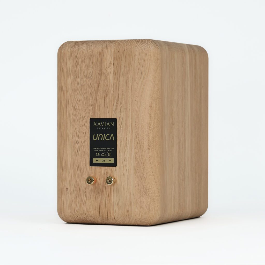 The Czech newcomer is a compact two-way stand-mount, built from slabs of 23mm-thick solid oak and roughly rectangular with generously radiused corners all round – the kind of shape that requires hand-building and finishing rather than being stamped out and folded from a sheet of MDF. This is something you might expect from a high-performance stand-mount design, but a solid oak construction in a loudspeaker priced at just €1,000 per pair is the stuff of “how do they do that?” Both drivers are custom-designed for the Unica rather than off-the-shelf. The five-part, second-order crossover uses components from Danish high-end outfit Jantzen, and the logo on the high-frequency unit proudly reads ‘XAVIAN Prague’ like a designer fashion label – with the distinction that, unlike most designer-label clothing, the speaker is actually made there by local craftsmen.